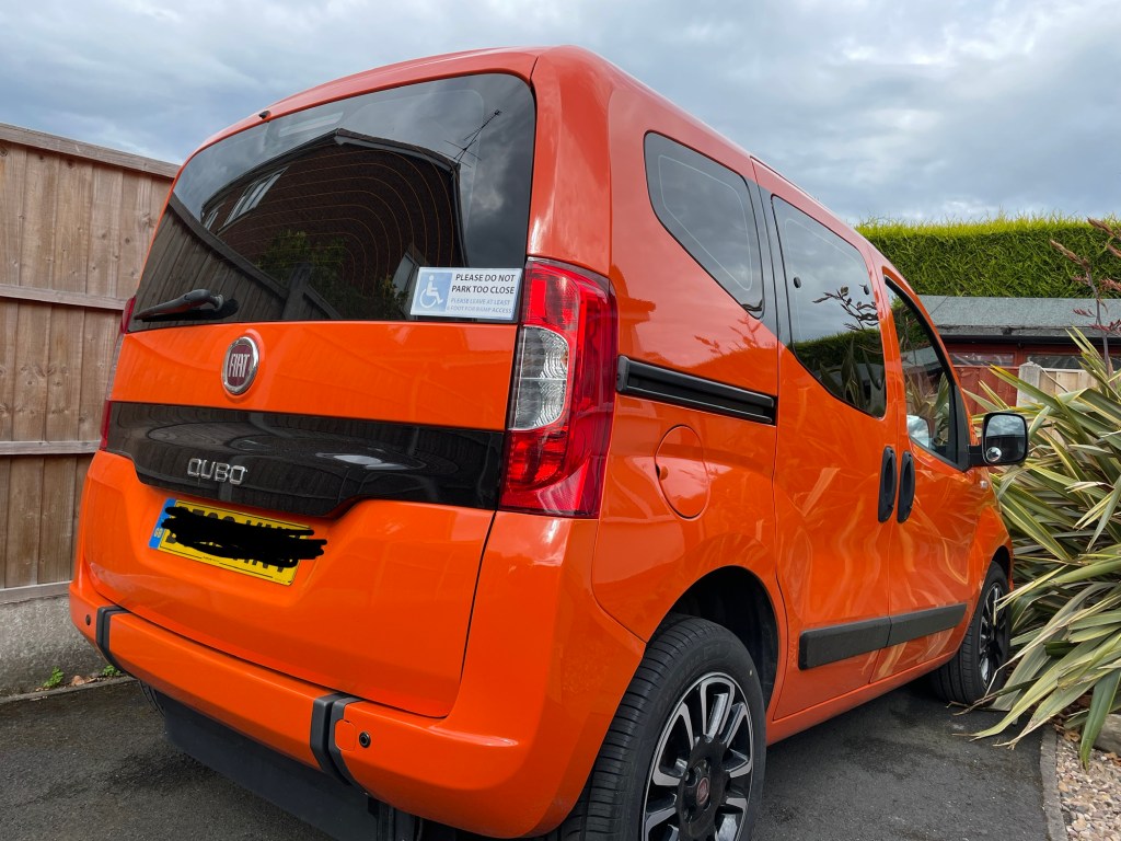 I’m now on my fourth car on the scheme. The first was a Suzuki Wagon R – nice little car but I had no end of issues with the adaptations. The second and third were Fiat Qubo’s – again a nice little car. The first Qubo was great and I didn’t have many issues with it, the second was more problematic but it was an amazing orange colour which I will miss!